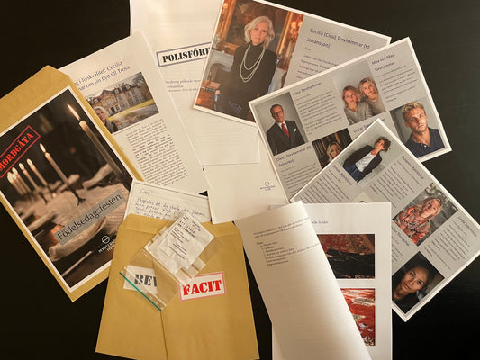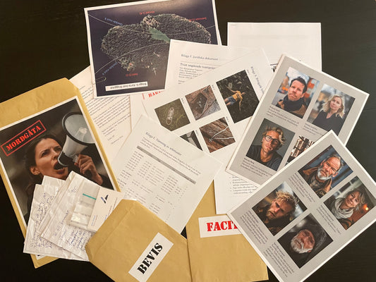 Vi på Mysterious Heir tycker att mordgåtor är det perfekta sällskapsspelet. Du får gnugga geniknölarna och om du gör det i sällskap med andra inbjuder de dessutom till avslappnat umgänge och stimulerande samtal. Hos oss hittar du mordgåtor på svenska med fokus på spännande miljöer och intressanta personligheter. Beställ hem en fiktiv mordutredning full av bevis, förhörsprotokoll, kartor, foton och andra ledtrådar. Utmana dig själv eller bjud in dina mest klarsynta vänner och lös ett mordmysterium tillsammans.